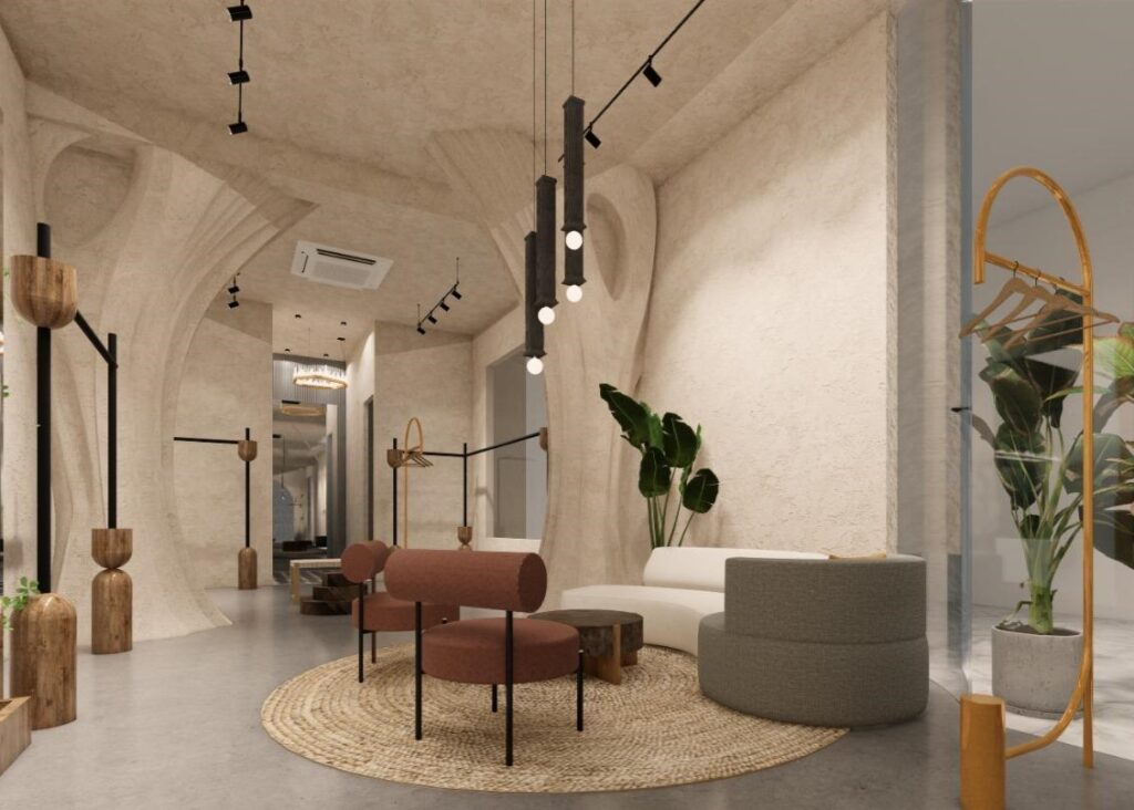 At the heart of this design lies the captivating concept of “Emerging Trees.” This sculpture-like element symbolizes longevity and continuity, evoking a sense of rootedness while embracing growth and evolution. The flowing forms and organic textures of the trees create a sense of unity and natural elegance, connecting the indoors with a sense of life and energy.